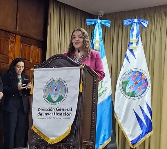 Posteriormente, la Lcda. Alejandra Rojas Sandoval de la Coordinadora General de Cooperación y Relaciones Internacionales de la USAC, presentó “Becas y oportunidades para los estudiantes que participan en proyectos de investigación de la USAC”, con énfasis en movilidad académica y colaboración global.